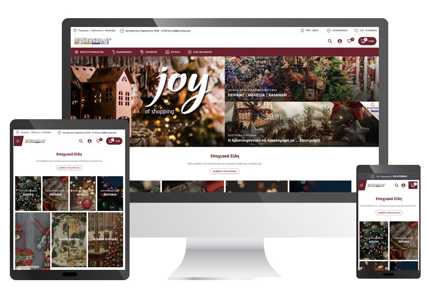 Το εποχιακο κατάστημα www.myseason.gr δραστηριοποιείται στις πωλήσεις εποχιακών ειδών, μέσω διαδικτύου, από το 2008 και συνεχώς ανανεώνεται, με νέα είδη που εισάγει, από διάφορα μέρη του κόσμου, με μεγάλη ποικιλία σε αποκριατικα κοστουμια, Xριστουγεννιατικα δεντρα και επιπλα κηπου.