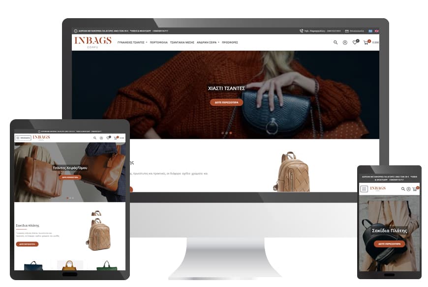 Από το 2000 λειτουργεί το φυσικό μας κατάστημα στο κέντρο της πόλης της Κέρκυρας στη οδό Παλαιολόγου 61 με τσάντες και αξεσουάρ μόδας για τη γυναίκα και τον άνδρα. Η καλύτερη αναλογία ποιότητας-τιμής είναι το κύριο μέλημα μας. Είμαστε πάντα πρόθυμοι να σας βοηθήσουμε να καλύψετε όλες σας τις ανάγκες. Το inbags.gr σας καλωσορίζει και είναι έτοιμο να σας ξεναγήσει στις νέες τάσεις της μόδας!