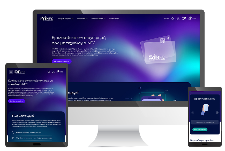 Η GoNFC card είναι ένας απλός και βολικός τρόπος αλληλεπίδρασης με τον κόσμο γύρω σας. Η διαδικασία είναι πολύ απλή, δεν χρειάζεται να καταβάσετε κάποιο application. Δεν περιέχουν κανένα στοιχείο δικό σας. Τα στοιχεία που έχετε δώσει είναι αποθηκευµένα σε server που τηρεί όλα τα πρωτόκολλα και κώδικες ασφαλείας.